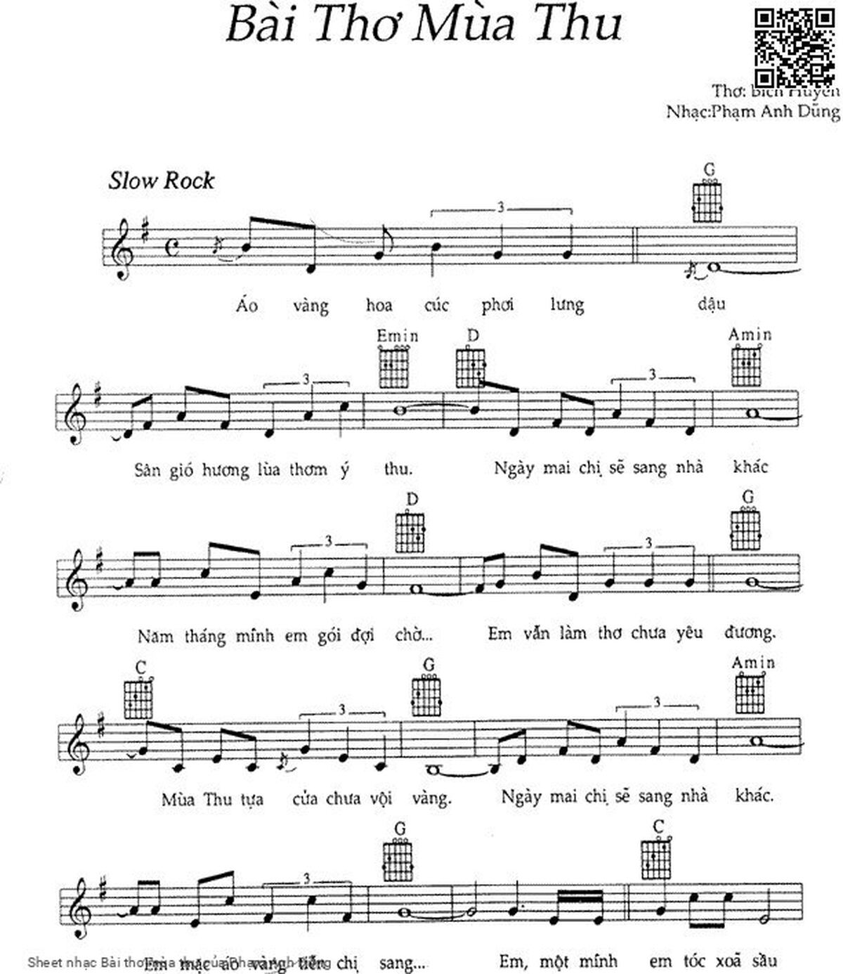 Chọn nút dấu + để tăng tông lên nửa cung, nút dấu - để giảm tông xuống nửa cung. Rê chuột vào hợp âm để xem các thế bấm hợp âm của bài hát Bài thơ mùa thu.