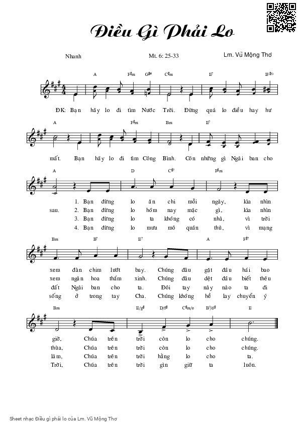 Lm. Vũ Mộng Thơ Bạn hãy lo đi tìm Nước Trời Đừng quá lo điều hay hư mất [PDF] [Sheet] [Lời H.A] [Mp4/Midi]