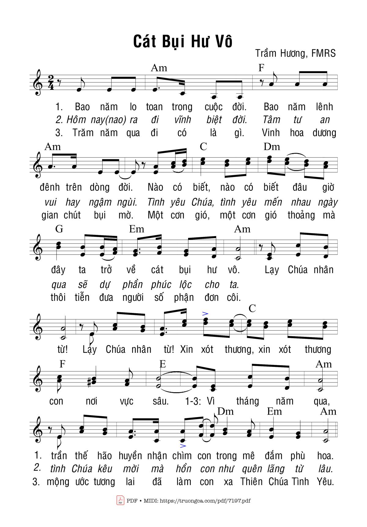 Trầm Hương Bao năm lo toan trong cuộc đời Bao năm lênh đênh giữa giòng đời [PDF] [Sheet] [Lời H.A] [Mp4/Midi]