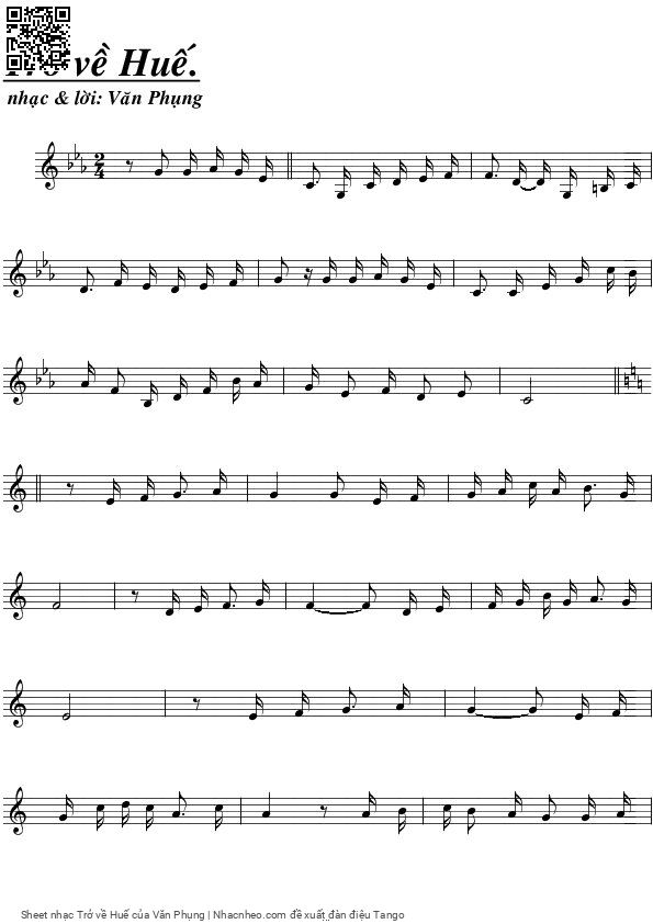 Chọn nút dấu + để tăng tông lên nửa cung, nút dấu - để giảm tông xuống nửa cung. Rê chuột vào hợp âm để xem các thế bấm hợp âm của bài hát Trở về Huế.