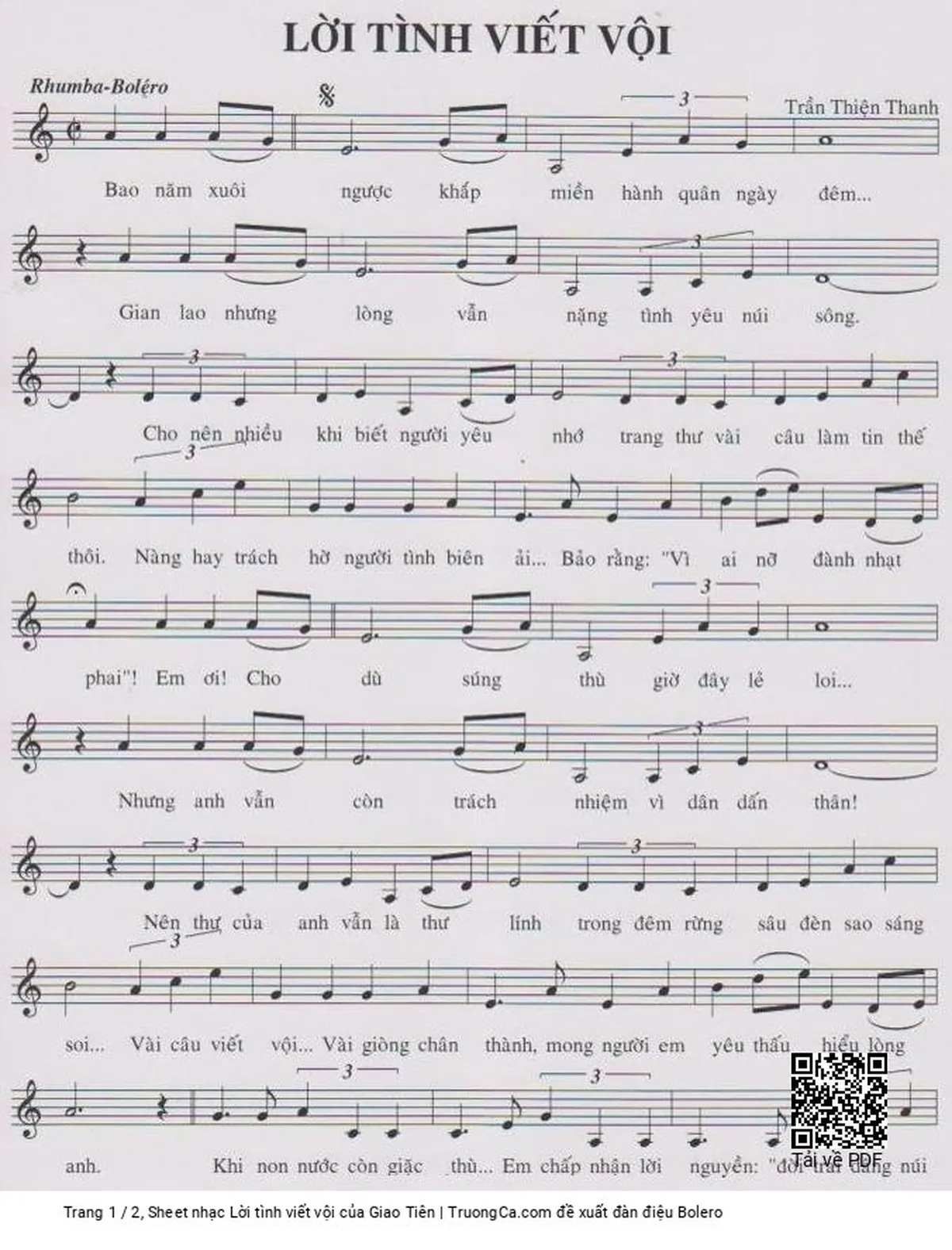Các sheet PDF tương tự Lời tình viết vội: