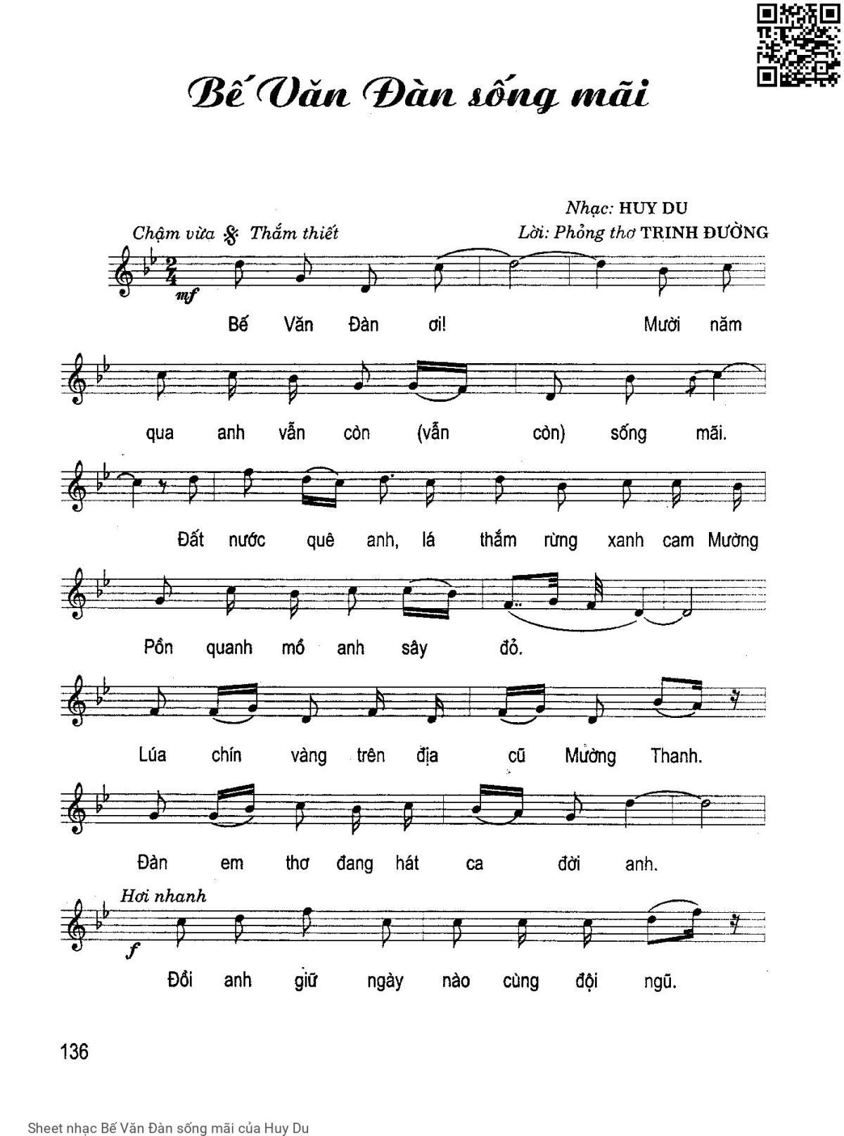 Huy Du Bế Văn Đàn ơi Mười năm qua anh vẫn còn sống mãi [PDF] [Sheet] [Lời H.A] [Mp4/Midi]