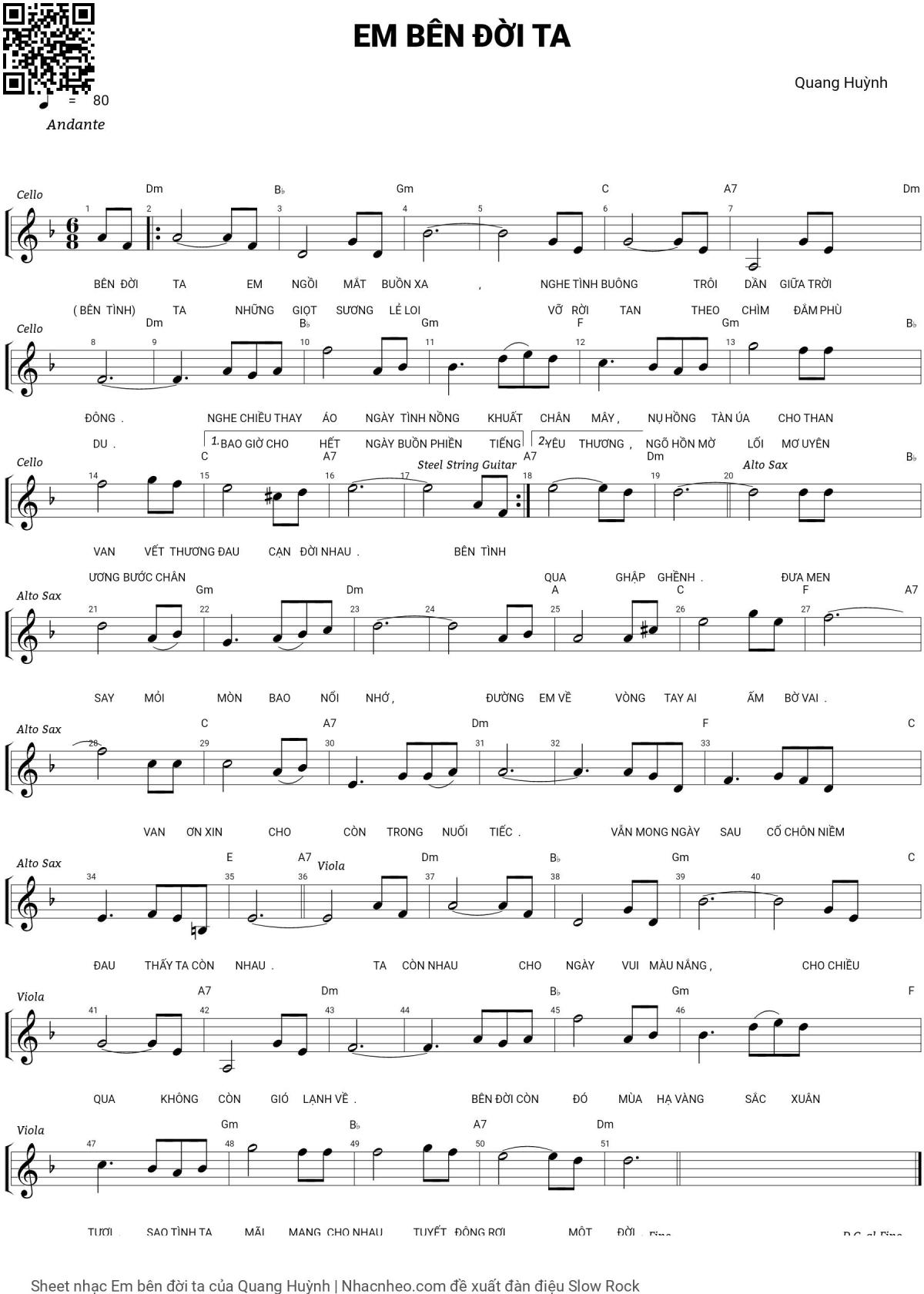 Quang Huỳnh Bên đời ta em ngồi mắt buồn xa Nghe tình buông trôi dần giữa trời Đông [PDF] [Sheet] [Lời H.A] [Mp4/Midi]