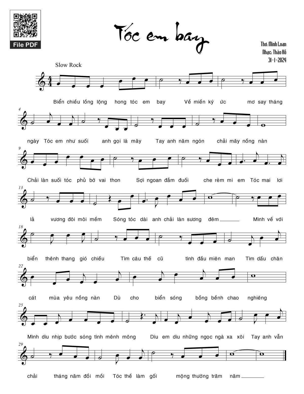 Phần nghe hát Tóc mây bay (Thảo Hồ) được nhúng từ Youtube, Musescore hoặc link ngoài và chịu sự kiểm soát bản quyền của bên thứ ba đó, vì vậy có thể bị xóa hoặc chèn quảng cáo bất kỳ lúc nào. Nếu bạn không nghe - xem được ca sĩ hát tức là đã bị Youtube hoặc Musescore kiểm soát.