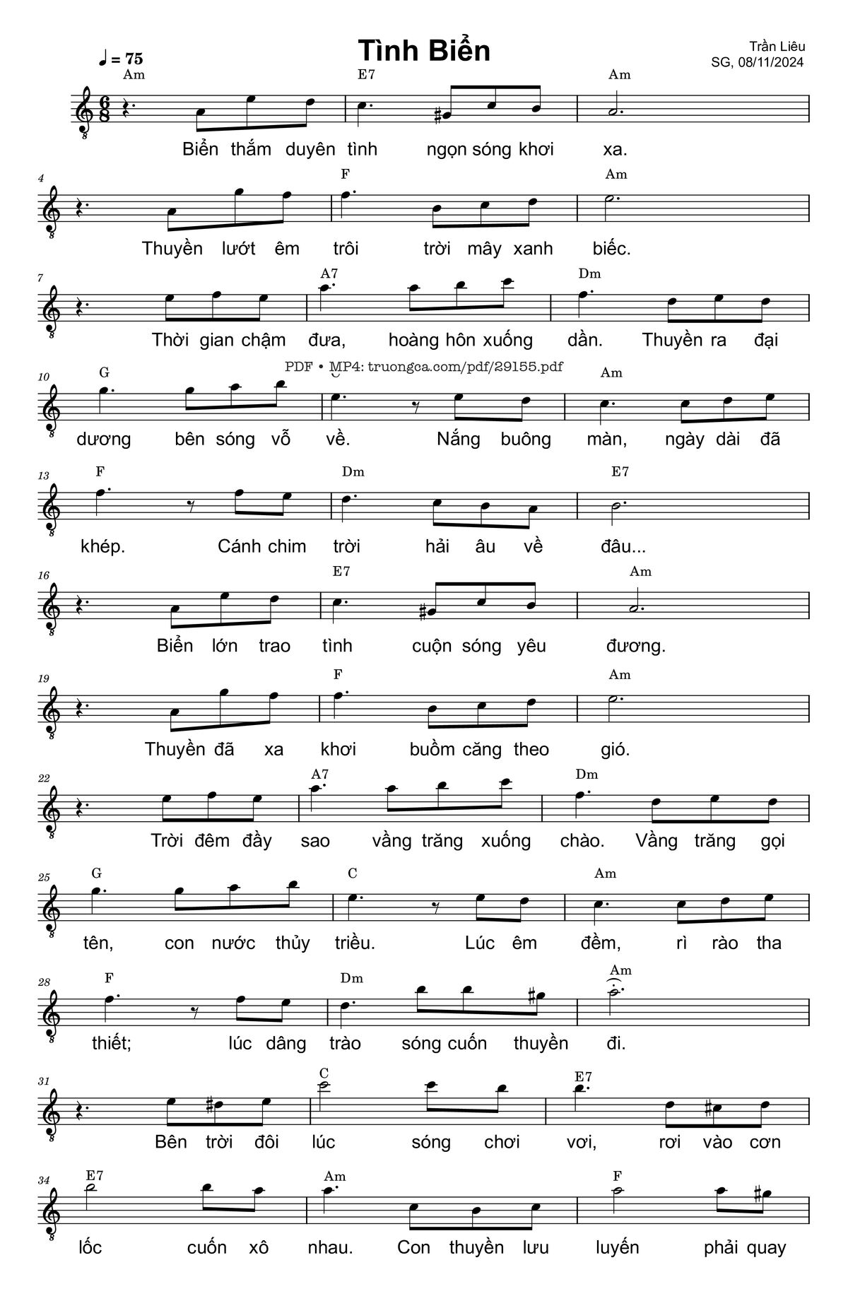 Trần Liêu Biển thắm duyên tình ngọn sóng khơi xa Thuyền lướt êm trôi [PDF] [Sheet] [Lời H.A] [Mp4/Midi]