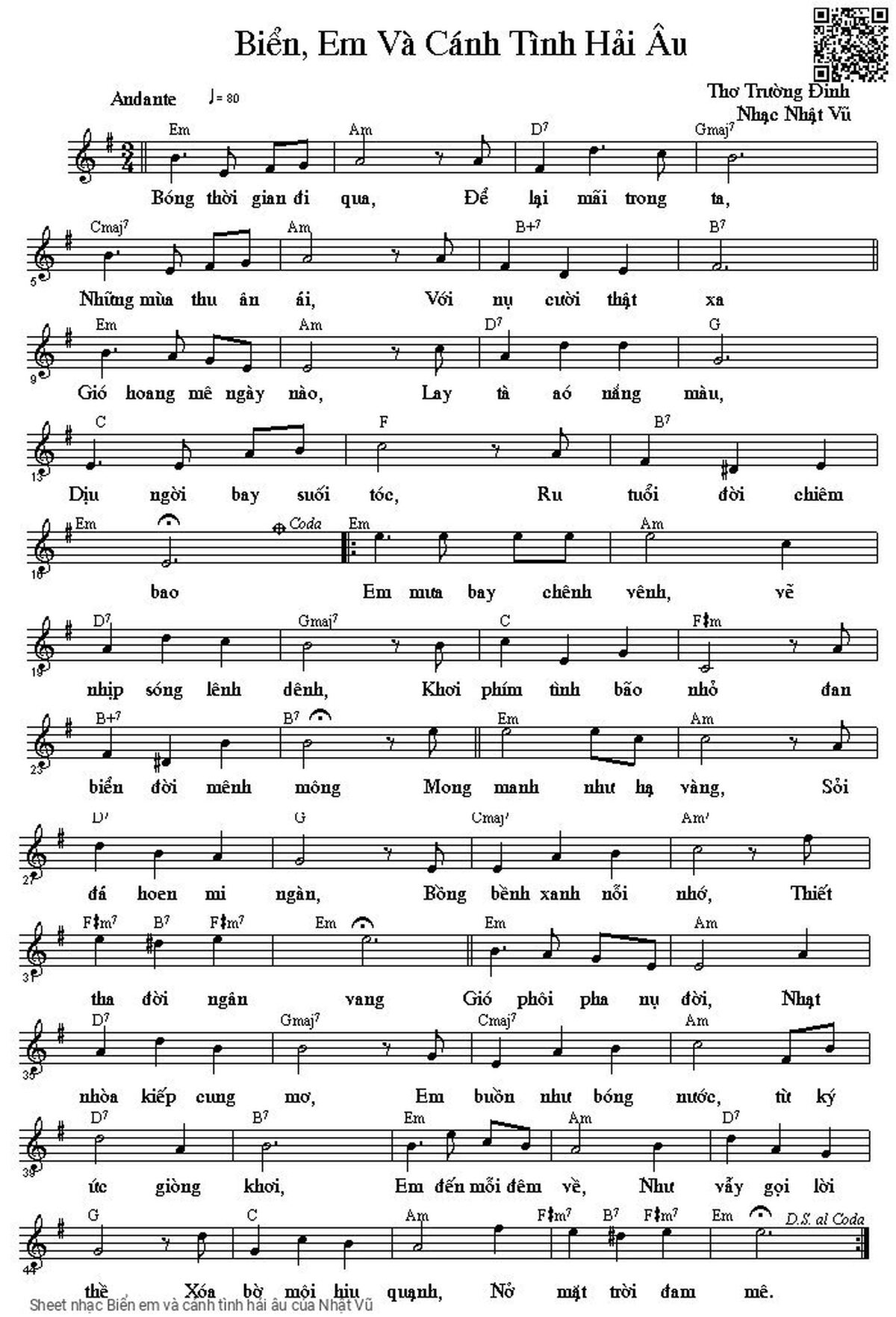 Phần nghe hát Biển em và cánh tình hải âu (Nhật Vũ) được nhúng từ Youtube, Musescore hoặc link ngoài và chịu sự kiểm soát bản quyền của bên thứ ba đó, vì vậy có thể bị xóa hoặc chèn quảng cáo bất kỳ lúc nào. Nếu bạn không nghe - xem được ca sĩ hát tức là đã bị Youtube hoặc Musescore kiểm soát.