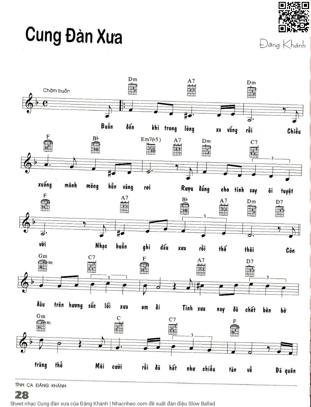 Phần nghe hát Cung đàn xưa (Đăng Khánh) được nhúng từ Youtube, Musescore hoặc link ngoài và chịu sự kiểm soát bản quyền của bên thứ ba đó, vì vậy có thể bị xóa hoặc chèn quảng cáo bất kỳ lúc nào. Nếu bạn không nghe - xem được ca sĩ hát tức là đã bị Youtube hoặc Musescore kiểm soát.