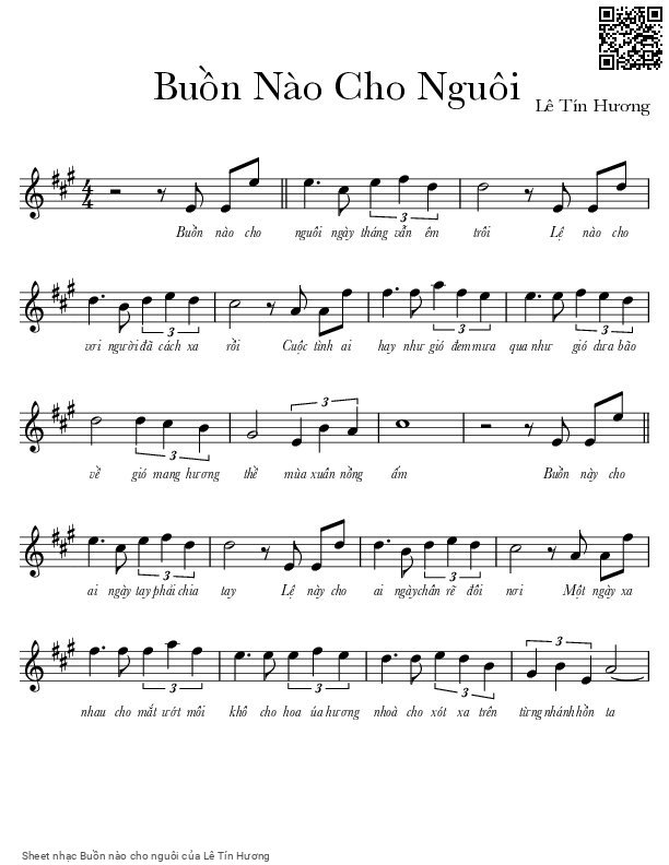Lê Tín Hương Buồn nào cho nguôi ngày tháng vẫn êm trôi [PDF] [Sheet] [Lời H.A] [Mp4/Midi]