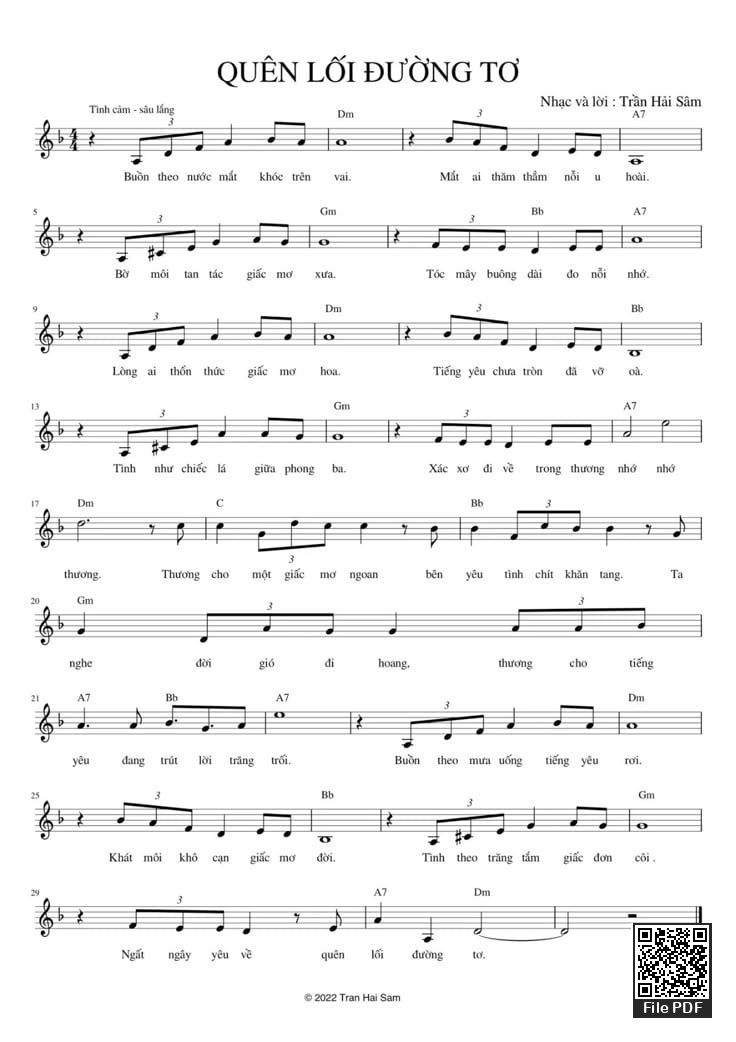 Trần Hải Sâm Buồn theo nước mắt khóc trên vai Mắt ai thăm thẳm nỗi u hoài [PDF] [Sheet] [Lời H.A] [Mp4/Midi]