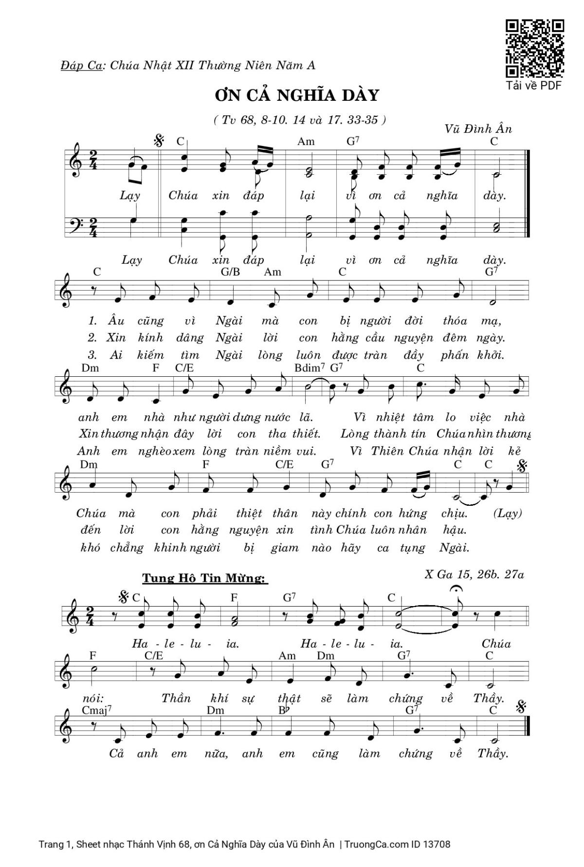 Các sheet PDF tương tự Thánh Vịnh 68, ơn Cả Nghĩa Dày: