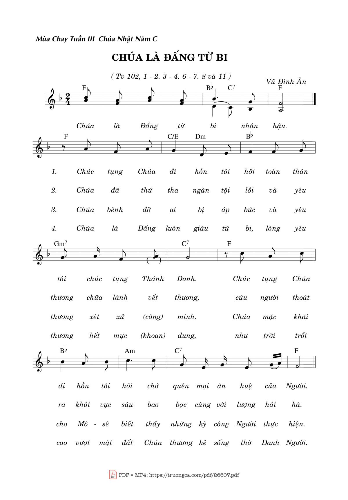 Vũ Đình Ân Ca Chúa Nhật C Mùa Chay Chúa là Đấng từ bi nhân hậu [PDF] [Sheet] [Lời H.A] [Mp4/Midi]