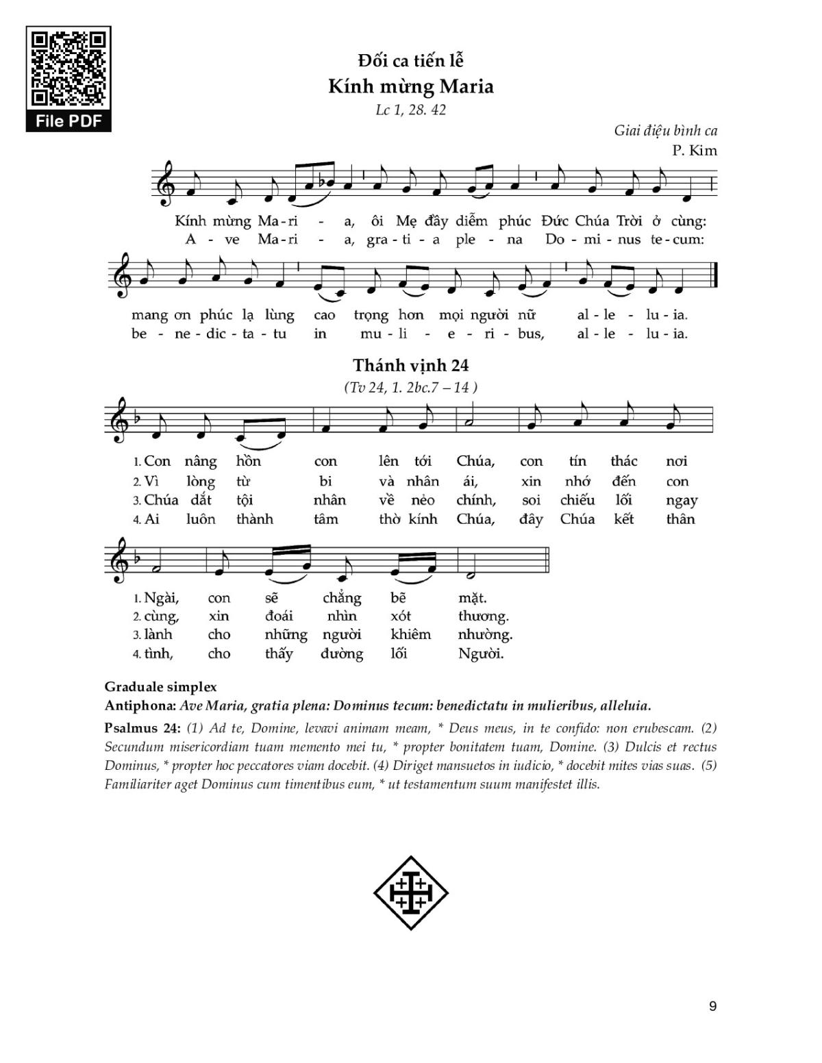 Đáp ca: A-ve Ma-ri-a, gra-ti-a ple-na Do-mi-nus te-cum: be-ne-dic-ta-tu in mu-li-e-ri-bus, al-le-lu-ia.
