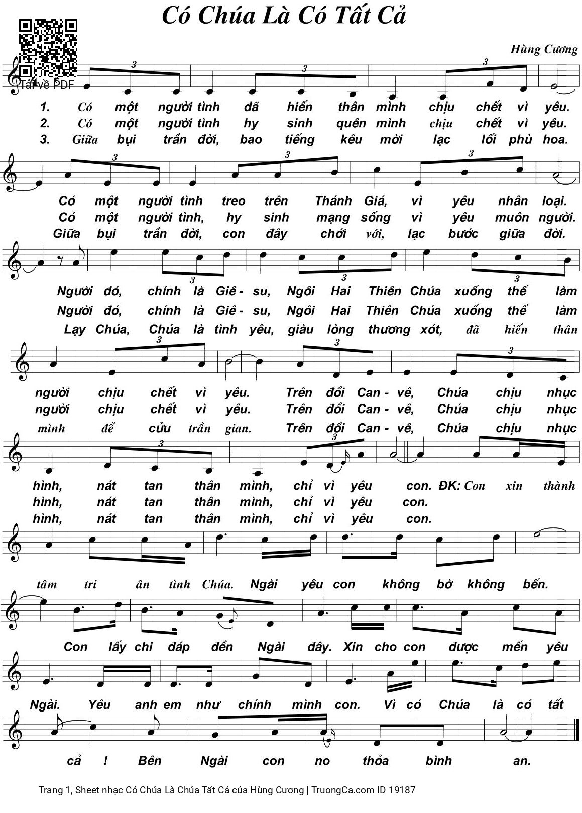Hùng Cương Ca Nguyện Hiệp Lễ Có một người tình đã hiến thân mình chịu chết vì yêu [PDF] [Sheet] [Lời H.A] [Mp4/Midi]