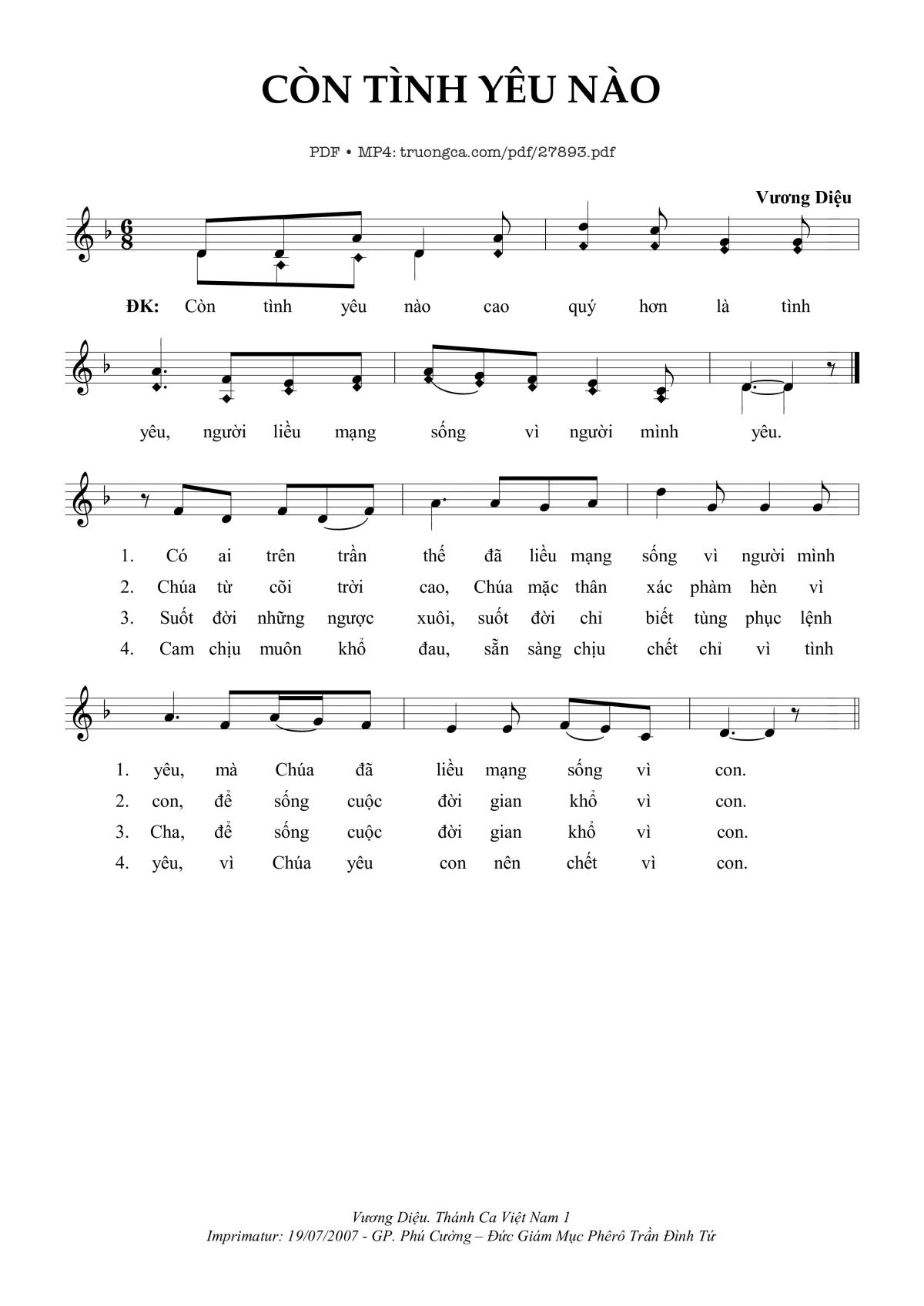 Vương Diệu Ca Nguyện Hiệp Lễ Thánh Ca Việt Nam I Còn tình yêu nào cao quý hơn là tình yêu [PDF] [Sheet] [Lời H.A] [Mp4/Midi]