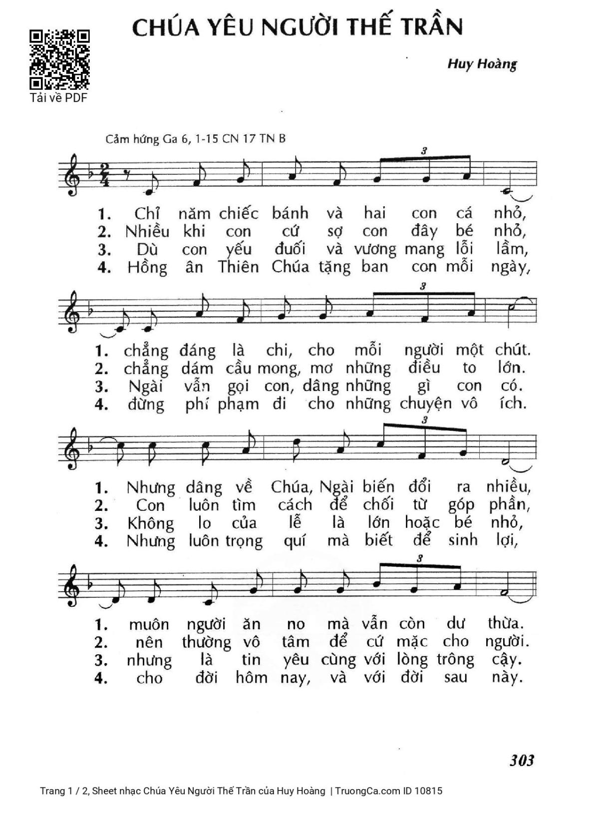 Các sheet PDF tương tự Chúa Yêu Người Thế Trần: