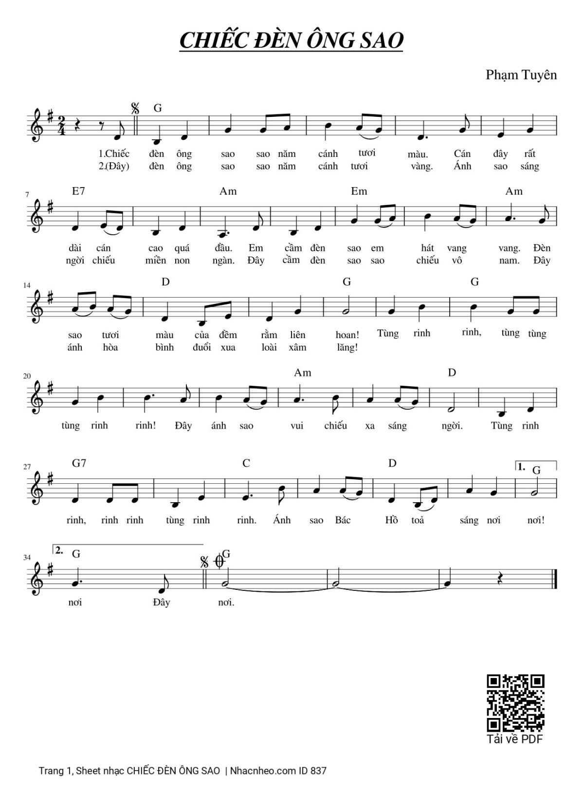 Phạm Tuyên Chiếc đèn ông sao sao năm cánh tươi màu [PDF] [Sheet] [Lời H.A] [Mp4/Midi] [Lời bình - giai thoại]