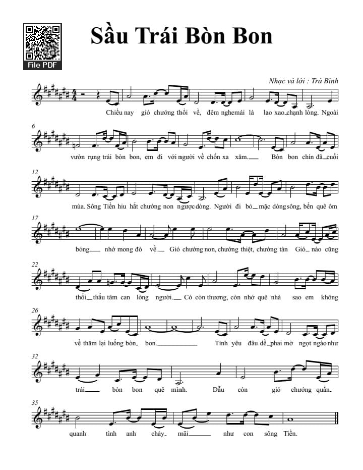 Trà Bình Chiều nay gió chướng thổi về Đêm nghe mái lá lao xao chạnh lòng [PDF] [Sheet] [Lời H.A] [Mp4/Midi]