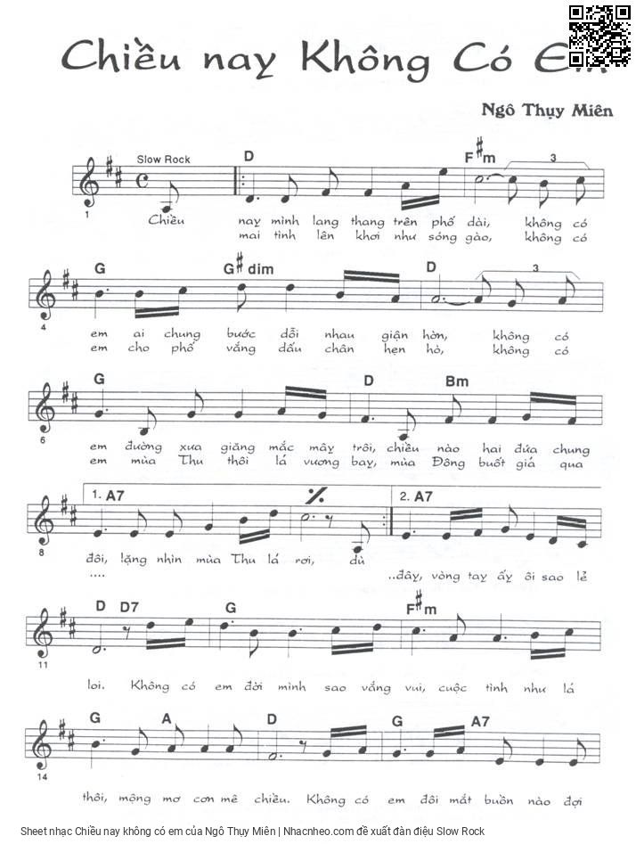 Ngô Thụy Miên Chiều nay mình lang thang trên phố dài Không có em ai chung bước dỗi nhau giận hờn [PDF] [Sheet] [Lời H.A] [Mp4/Midi]