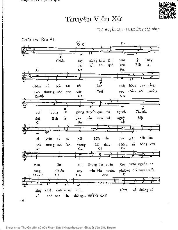 Phần nghe hát Thuyền viễn xứ (Phạm Duy) được nhúng từ Youtube, Musescore hoặc link ngoài và chịu sự kiểm soát bản quyền của bên thứ ba đó, vì vậy có thể bị xóa hoặc chèn quảng cáo bất kỳ lúc nào. Nếu bạn không nghe - xem được ca sĩ hát tức là đã bị Youtube hoặc Musescore kiểm soát.