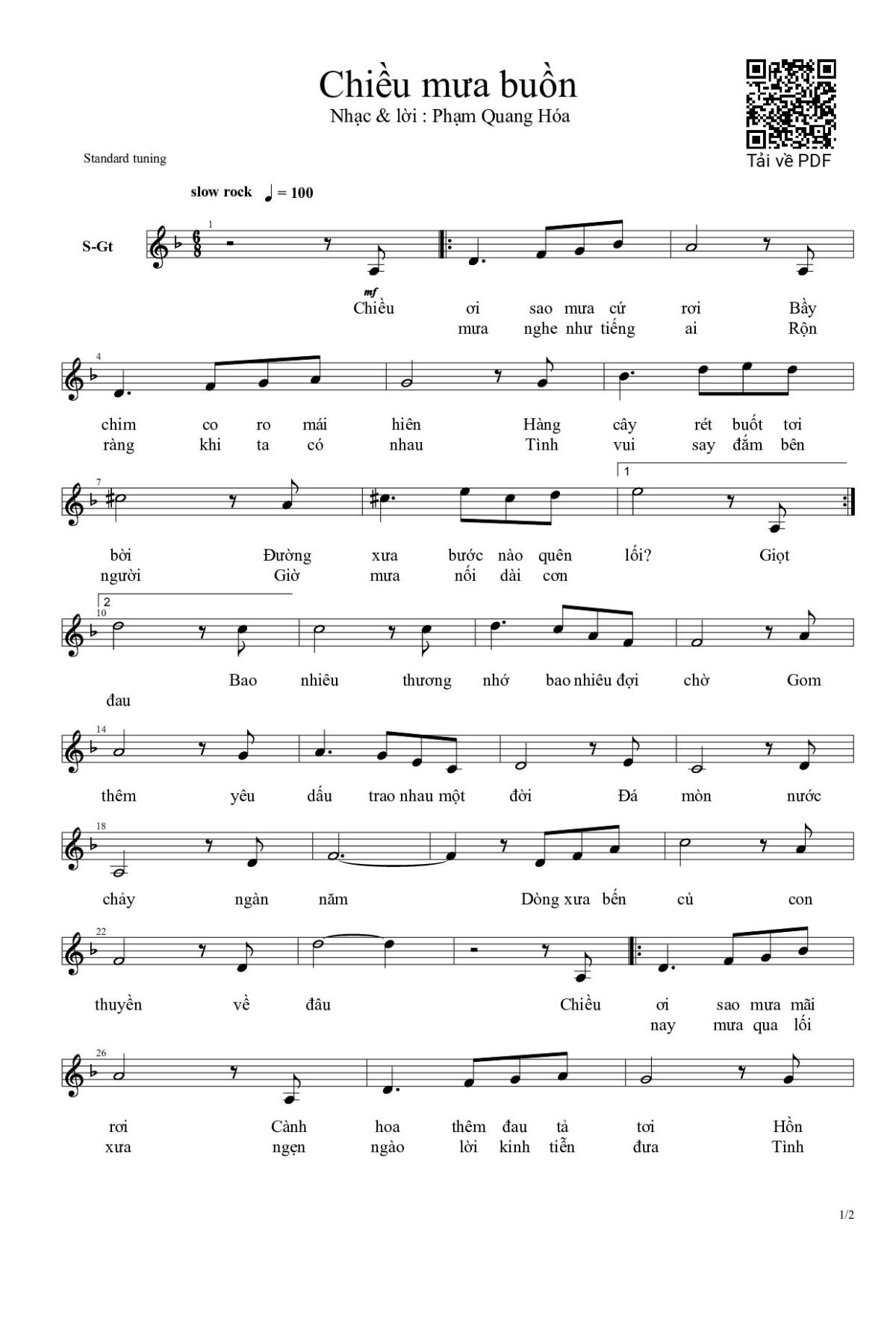 Phạm Quang Hóa Chiều ơi sao mưa cứ rơi Bầy chim co ro mái hiên [PDF] [Sheet] [Lời H.A] [Mp4/Midi]