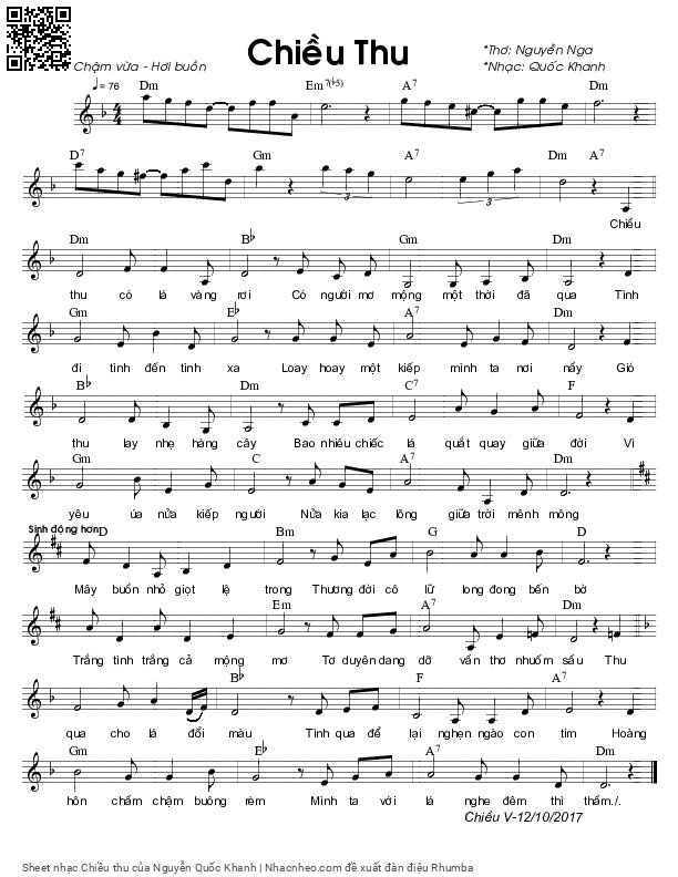 Nguyễn Quốc Khanh Chiều thu có lá vàng rơi Có người mơ mộng một thời đã qua [PDF] [Sheet] [Lời H.A] [Mp4/Midi]