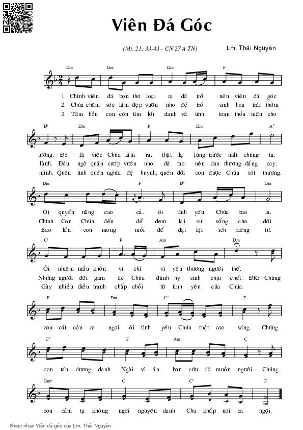 Lm. Thái Nguyên Chính viên đá bọn thợ loại ra đã trở nên viên đá góc tường [PDF] [Sheet] [Lời H.A] [Mp4/Midi]