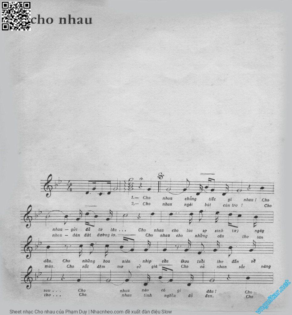 Phạm Duy Cho nhau chẳng tiếc gì nhau Cho nhau gửi đã từ lâu [PDF] [Sheet] [Lời H.A] [Mp4/Midi]
