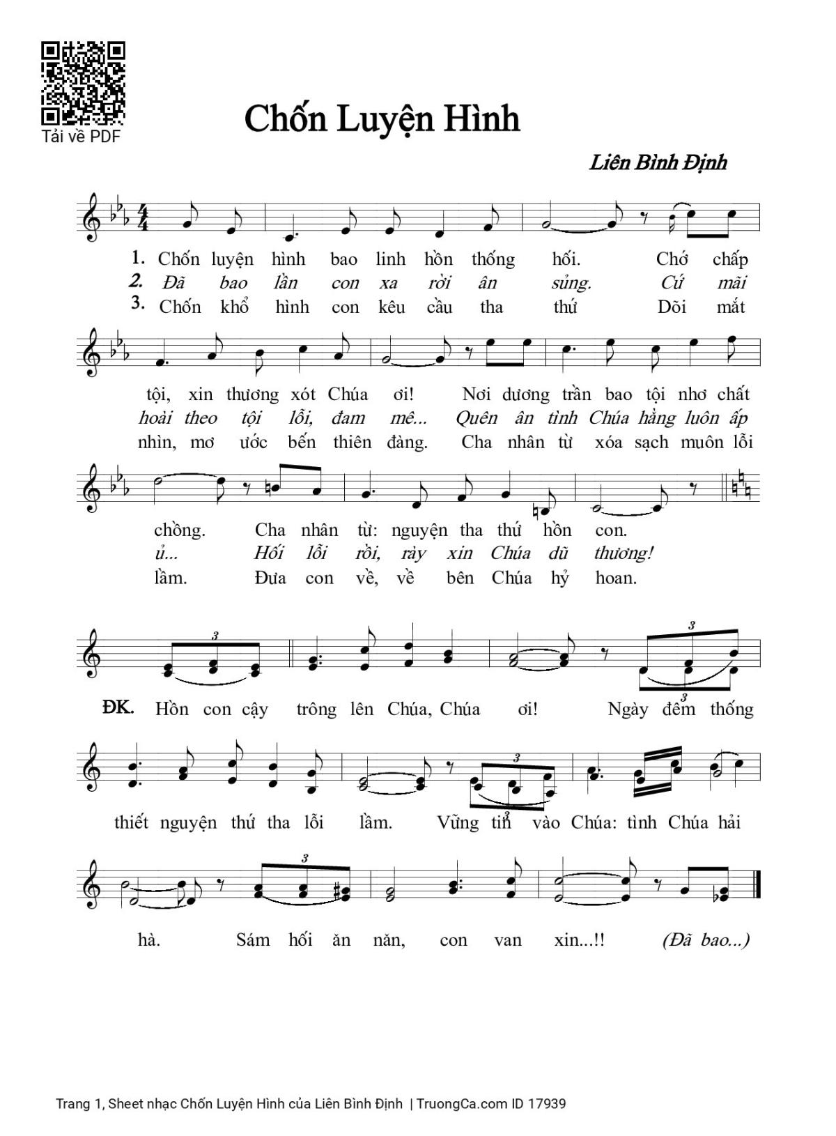 1. Chốn luyện hình bao linh hồn thống hối. Chớ chấp tội, xin thương xót Chúa ơi! Nơi dương trần bao tội nhơ chất chồng. Cha nhân từ: nguyện tha thứ hồn con.