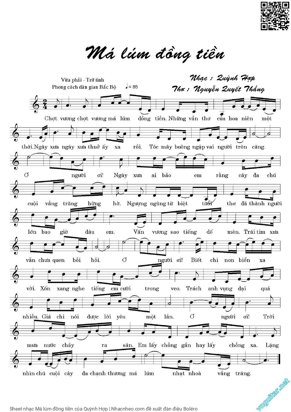 Chọn nút dấu + để tăng tông lên nửa cung, nút dấu - để giảm tông xuống nửa cung. Rê chuột vào hợp âm để xem các thế bấm hợp âm của bài hát Má lúm đồng tiền.