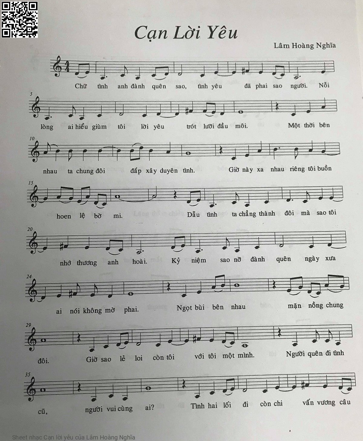 Lâm Hoàng Nghĩa Chữ tình anh đành quên sao tình yêu đã phai sao người [PDF] [Sheet] [Lời H.A] [Mp4/Midi]
