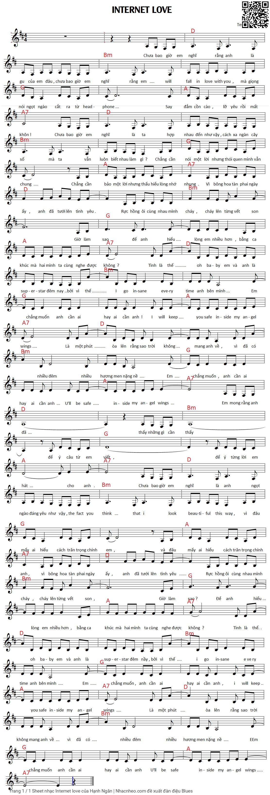 Chọn nút dấu + để tăng tông lên nửa cung, nút dấu - để giảm tông xuống nửa cung. Rê chuột vào hợp âm để xem các thế bấm hợp âm của bài hát Internet love.