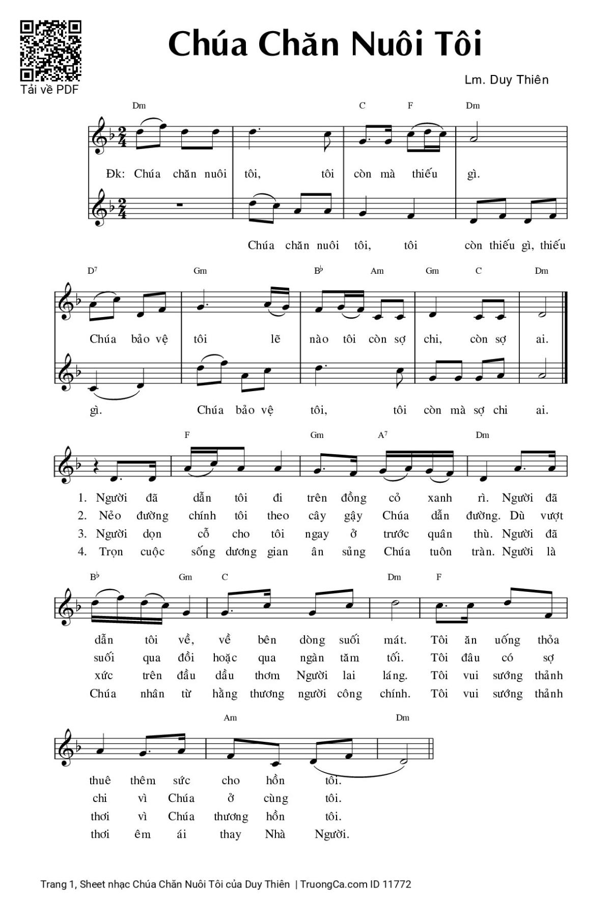 Duy Thiên Chúa chăn nuôi tôi tôi còn mà thiếu gì Chúa bảo vệ tôi [PDF] [Sheet] [Lời H.A] [Mp4/Midi]