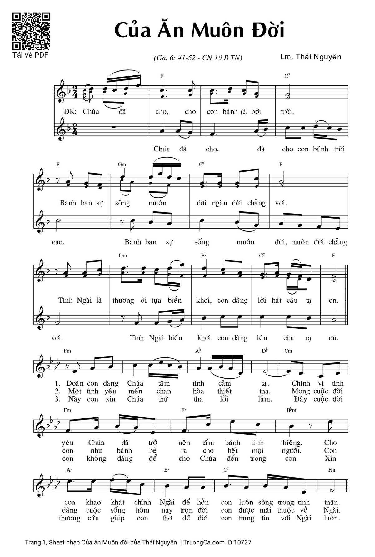 Thái Nguyên Chúa đã cho cho con bánh bởi trời Bánh ban sự sống muôn đời ngàn đời chẳng vơi [PDF] [Sheet] [Lời H.A] [Mp4/Midi]