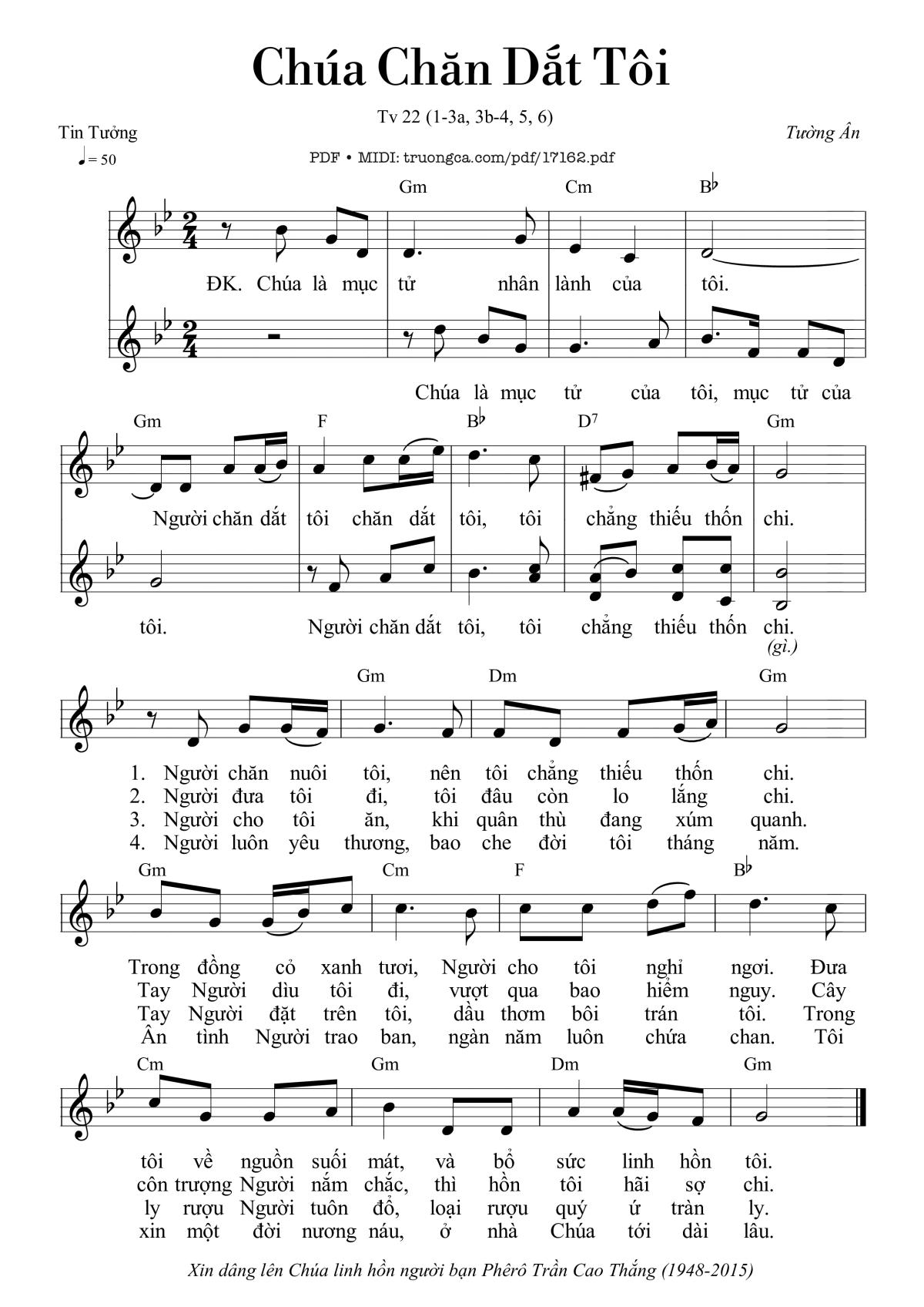 Tường Ân Chúa là mục tử nhân lành của tôi Người chăn dắt tôi chăn dắt tôi [PDF] [Sheet] [Lời H.A] [Mp4/Midi]