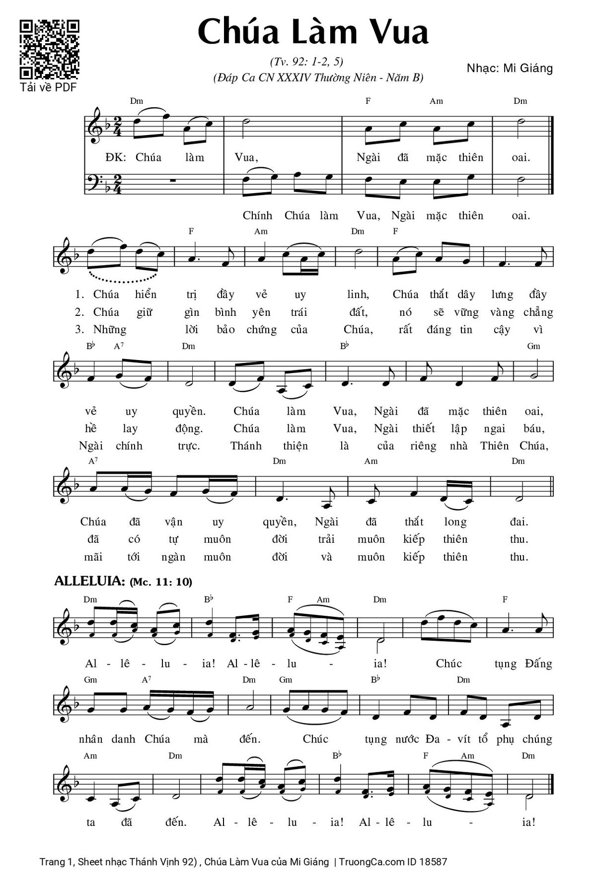 Các sheet PDF tương tự Thánh Vịnh 92) , Chúa Làm Vua:
