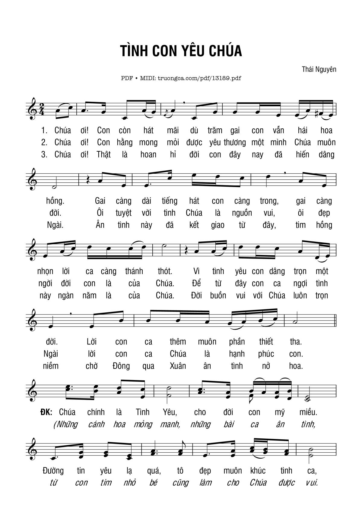 Thái Nguyên Chúa ơi Con còn hát mãi dù trăm gai con vẫn hái hoa hồng [PDF] [Sheet] [Lời H.A] [Mp4/Midi]