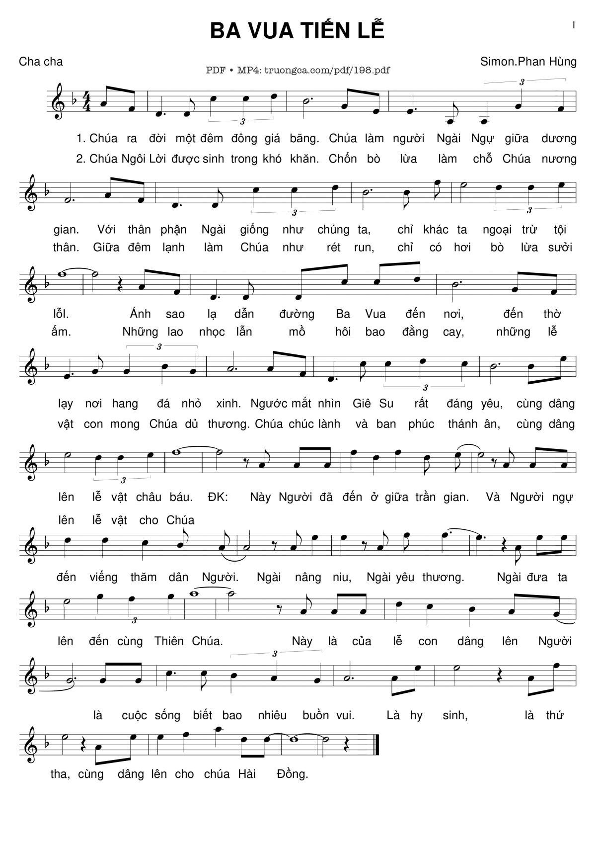 Phần nghe hát Ba Vua tiến lễ (Phan Hùng) được nhúng từ Youtube, Musescore hoặc link ngoài và chịu sự kiểm soát bản quyền của bên thứ ba đó, vì vậy có thể bị xóa hoặc chèn quảng cáo bất kỳ lúc nào. Nếu bạn không nghe - xem được ca sĩ hát tức là đã bị Youtube hoặc Musescore kiểm soát.