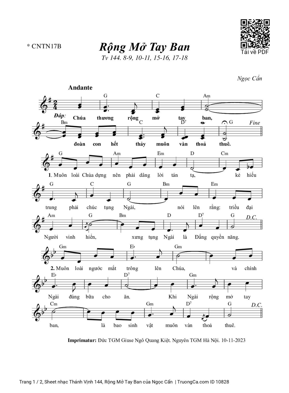 Các sheet PDF tương tự Thánh Vịnh 144, Rộng Mở Tay Ban: