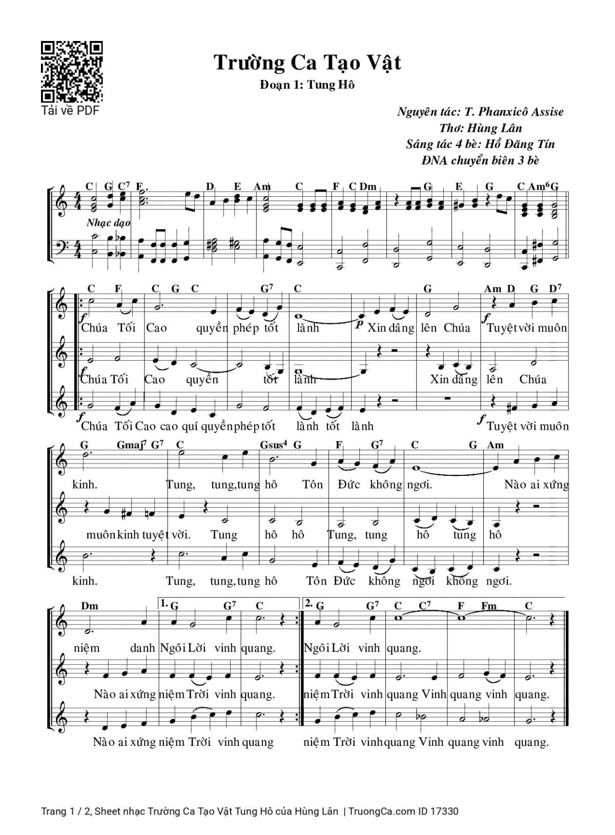 Các sheet PDF tương tự Trường Ca Tạo Vật Tung Hô:
