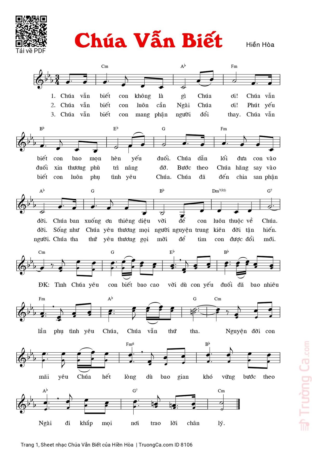 Hiền Hòa Chúa vẫn biết con không là gì Chúa ơi Chúa vẫn biết con bao mọn hèn yếu đuối [PDF] [Sheet] [Lời H.A] [Mp4/Midi]