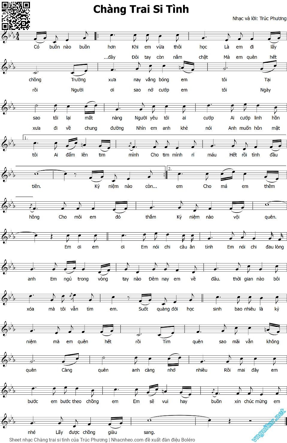 Chọn nút dấu + để tăng tông lên nửa cung, nút dấu - để giảm tông xuống nửa cung. Rê chuột vào hợp âm để xem các thế bấm hợp âm của bài hát Chàng trai si tình.