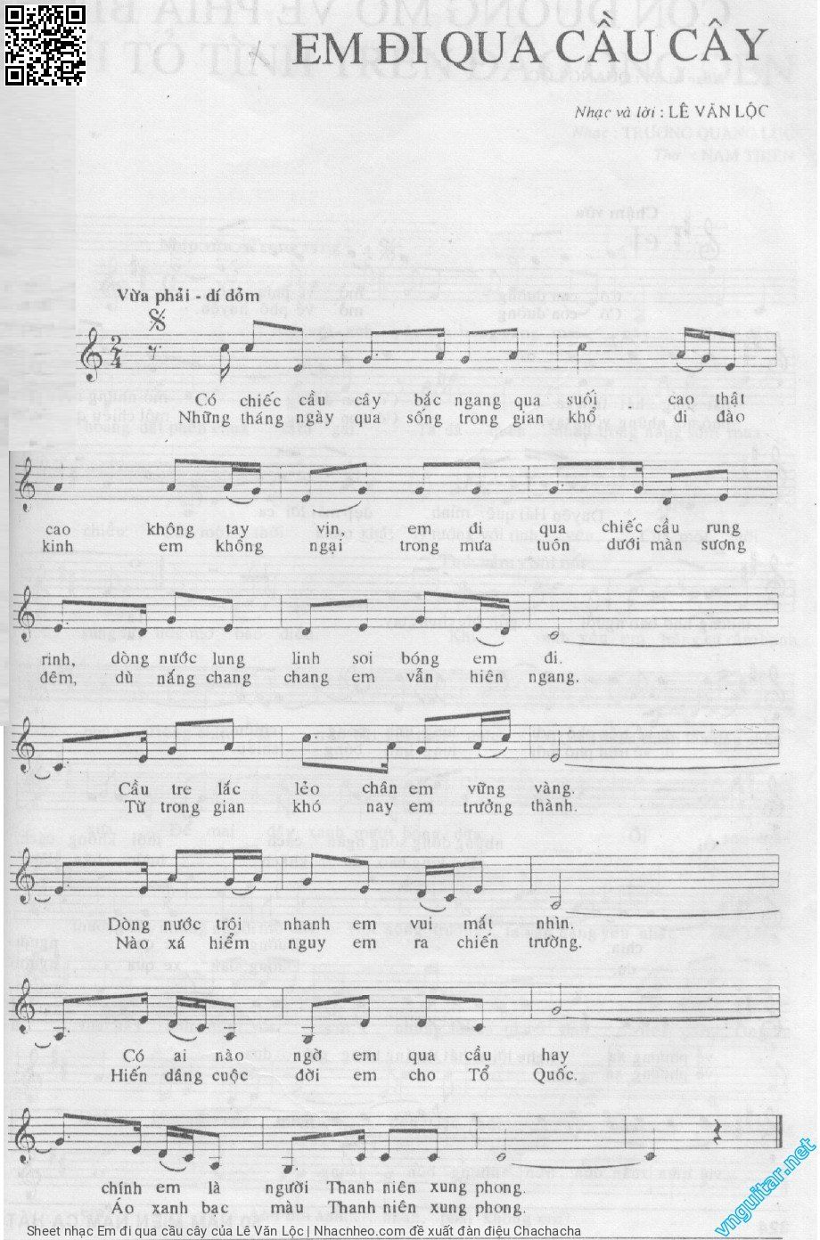 Lê Văn Lộc Có chiếc cầu cây bắc ngang qua suối Cao thật cao [PDF] [Sheet] [Lời H.A] [Mp4/Midi] [Lời bình - giai thoại]