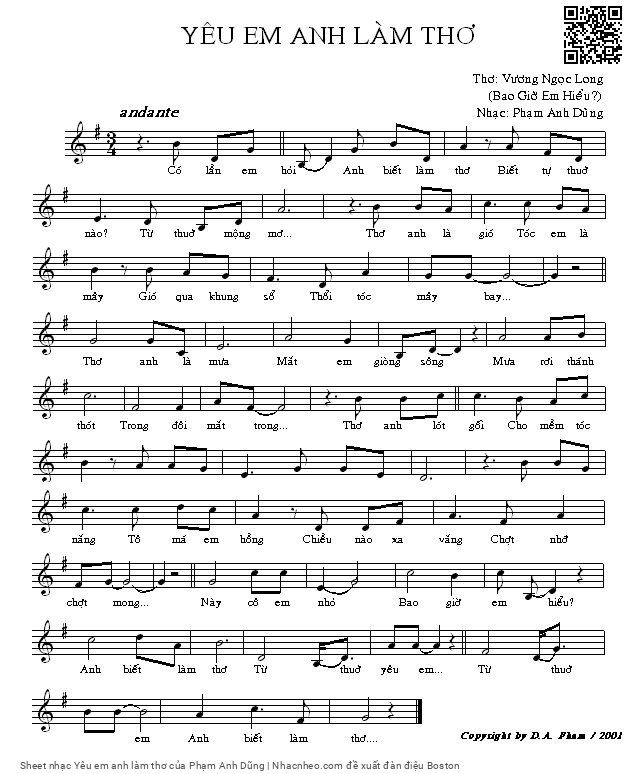 Các sheet PDF tương tự Yêu em anh làm thơ: