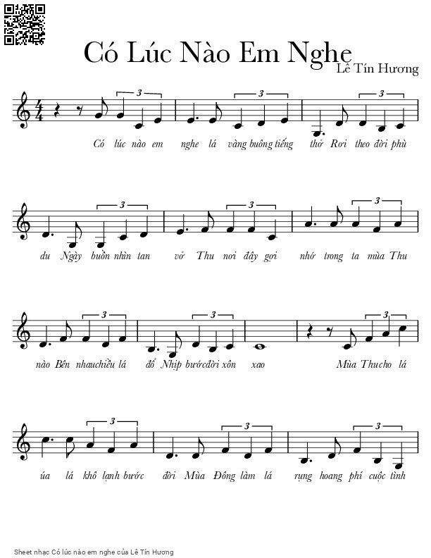 Lê Tín Hương Có lúc nào em nghe lá vàng buông tiếng thở [PDF] [Sheet] [Lời H.A] [Mp4/Midi]