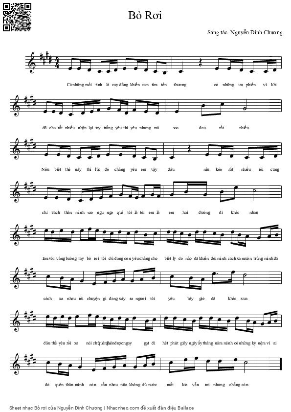 Phần nghe hát Bỏ rơi (Nguyễn Đình Chương) được nhúng từ Youtube, Musescore hoặc link ngoài và chịu sự kiểm soát bản quyền của bên thứ ba đó, vì vậy có thể bị xóa hoặc chèn quảng cáo bất kỳ lúc nào. Nếu bạn không nghe - xem được ca sĩ hát tức là đã bị Youtube hoặc Musescore kiểm soát.