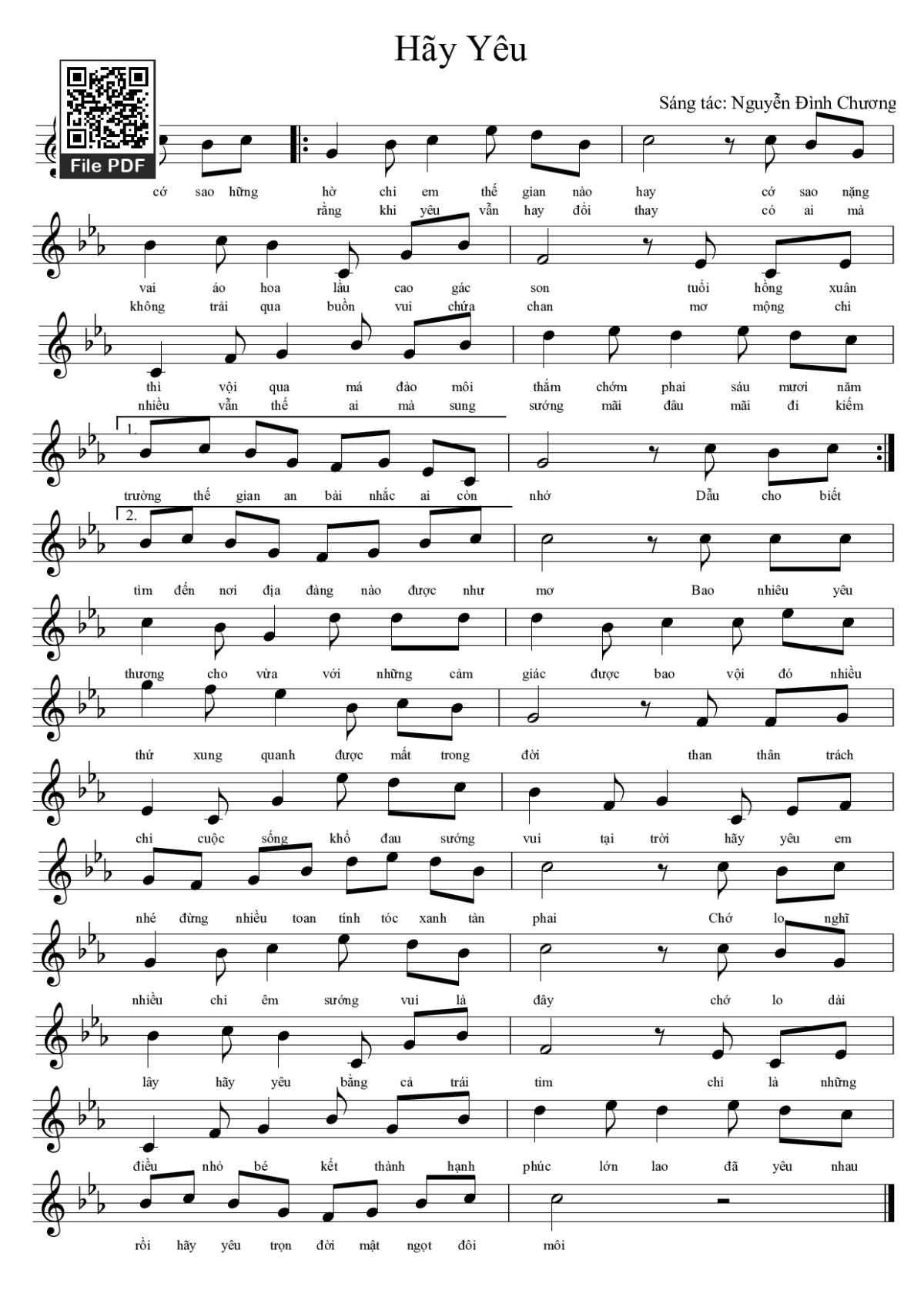 Phần nghe hát Hãy yêu (Nguyễn Đình Chương) được nhúng từ Youtube, Musescore hoặc link ngoài và chịu sự kiểm soát bản quyền của bên thứ ba đó, vì vậy có thể bị xóa hoặc chèn quảng cáo bất kỳ lúc nào. Nếu bạn không nghe - xem được ca sĩ hát tức là đã bị Youtube hoặc Musescore kiểm soát.