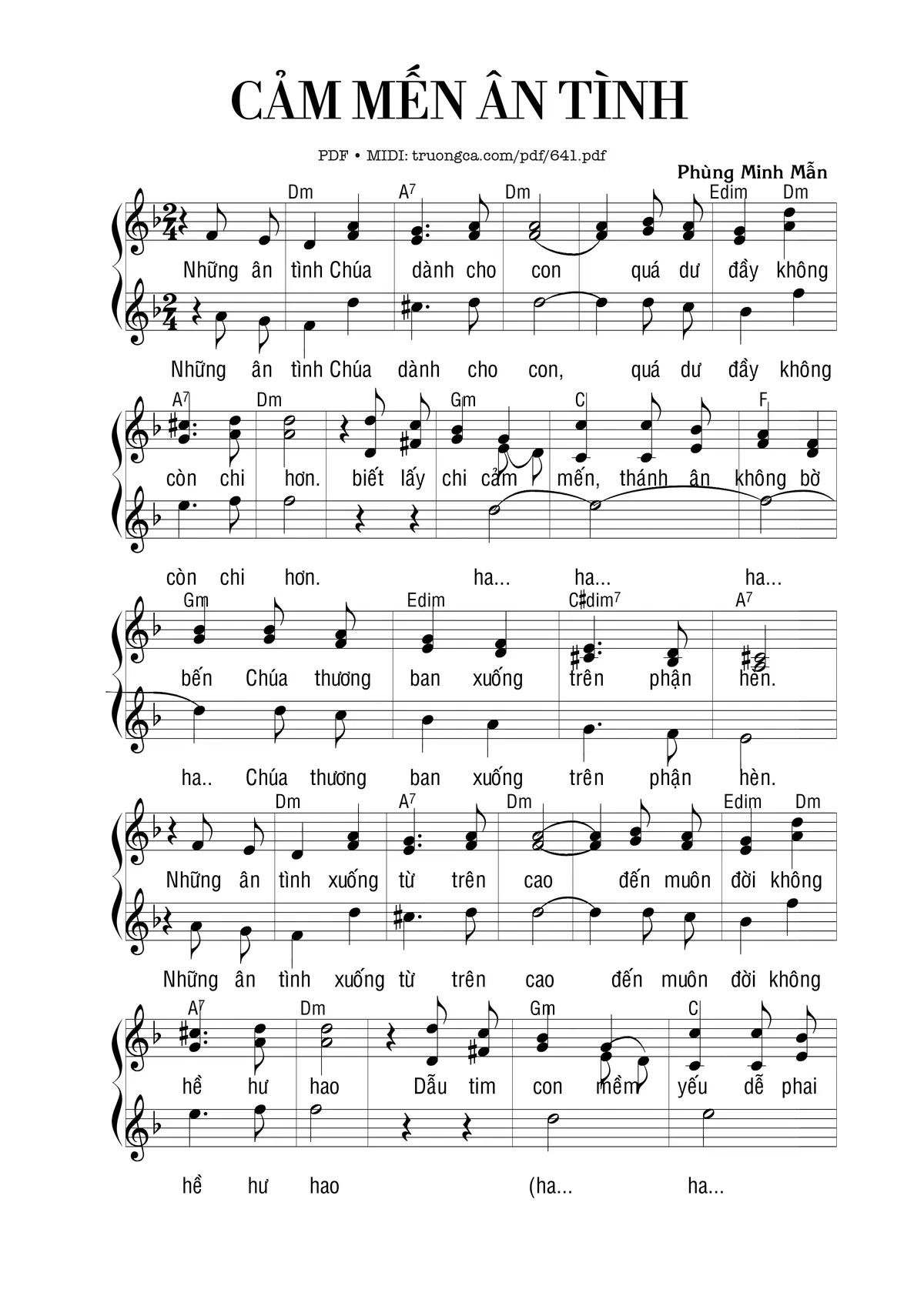 Phùng Minh Mẫn Có Sheet đệm Piano và sheet lời Có sheet cho ca đoàn [PDF] [Sheet] [Lời H.A] [Mp4/Midi]
