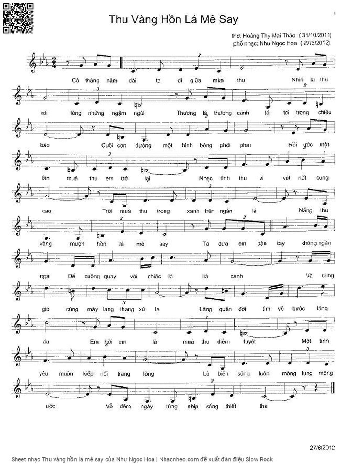 Như Ngọc Hoa Có tháng năm dài ta đi giữa mùa thu Nhìn lá thu rơi lòng những ngậm ngùi [PDF] [Sheet] [Lời H.A] [Mp4/Midi]