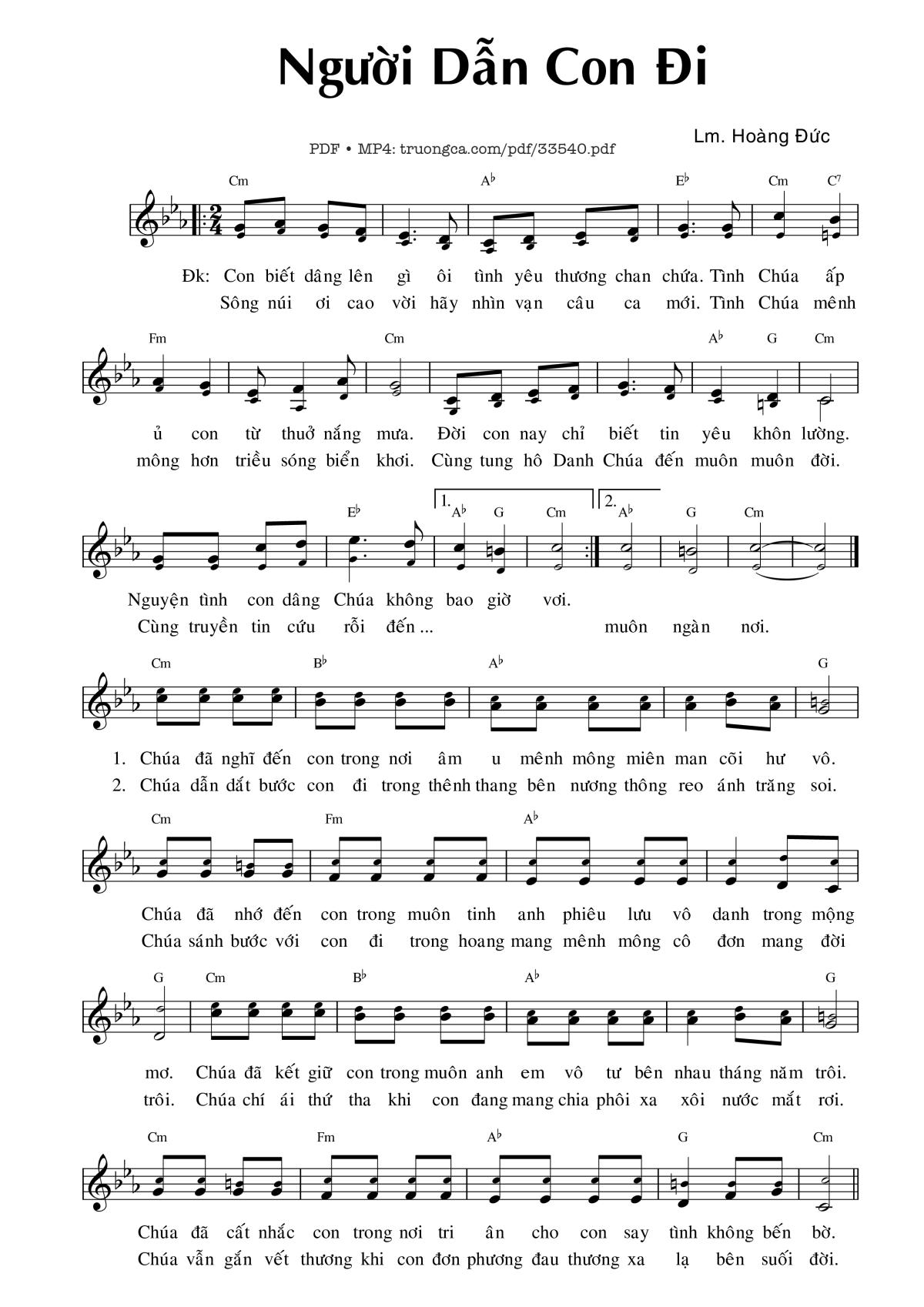 Phần nghe hát Người Dẫn Con Đi (Hoàng Đức) được nhúng từ Youtube, Musescore hoặc link ngoài và chịu sự kiểm soát bản quyền của bên thứ ba đó, vì vậy có thể bị xóa hoặc chèn quảng cáo bất kỳ lúc nào. Nếu bạn không nghe - xem được ca sĩ hát tức là đã bị Youtube hoặc Musescore kiểm soát.
