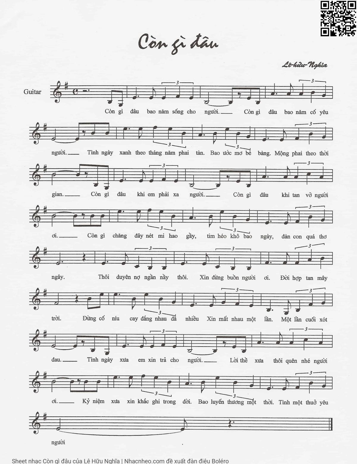 Lê Hữu Nghĩa Còn gì đâu bao năm sống cho người Còn gì đâu bao năm cố yêu người [PDF] [Sheet] [Lời H.A] [Mp4/Midi]